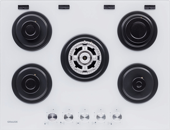 Компактная газовая панель шириной 70 см с 5 конфорками, включая WOK. Поворотные переключатели обеспечивают удобное управление. Система «Газ контроль» и автоматический электроподжиг гарантируют безопасность.