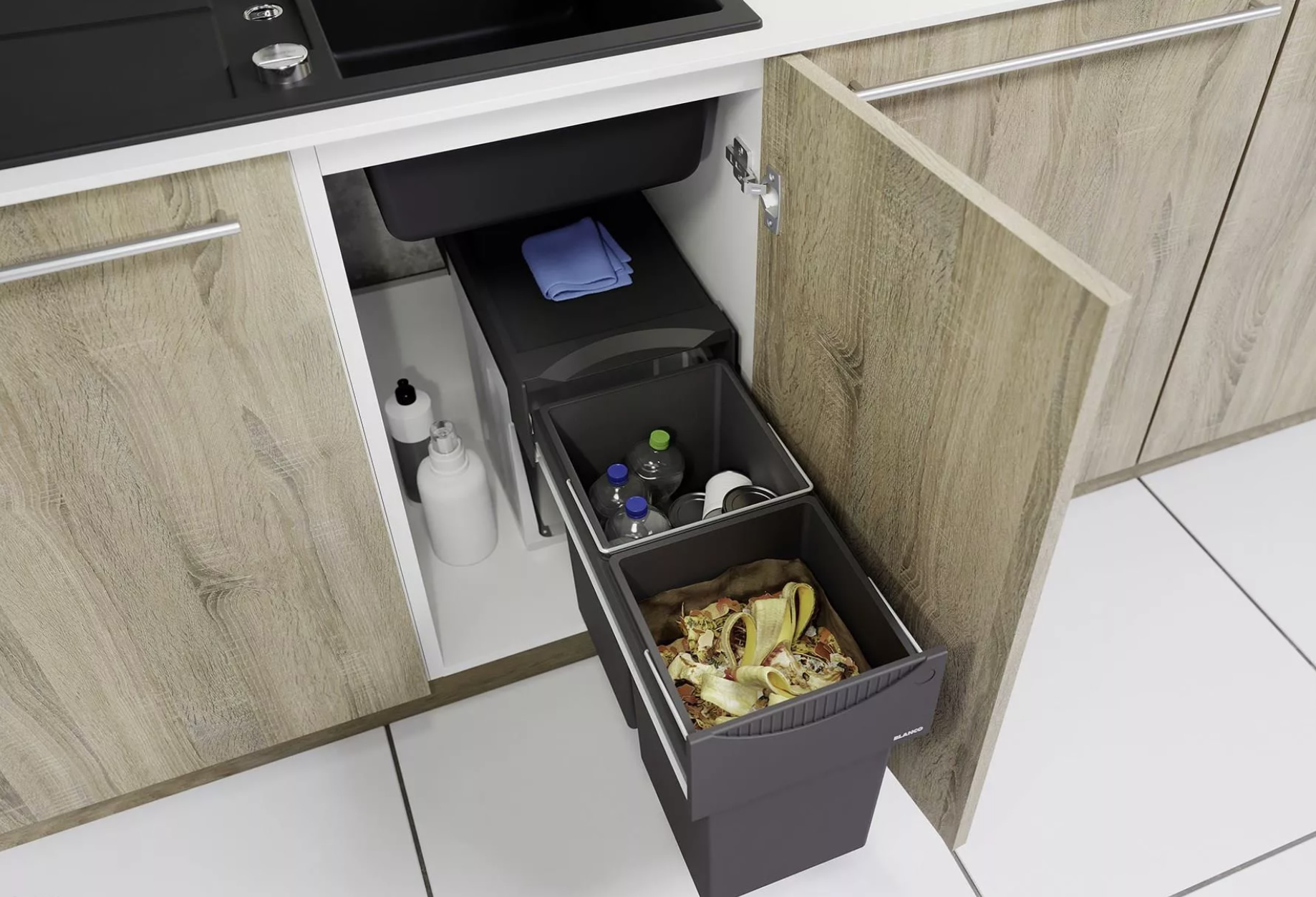 Система сортировки отходов BOTTON II 30/2 от Blanco воплощает философию бескомпромиссного качества, инновационного дизайна и функциональности, превращая самое активное место на кухне в продуманный, эргономичный и эстетичный центр для приготовления пищи.