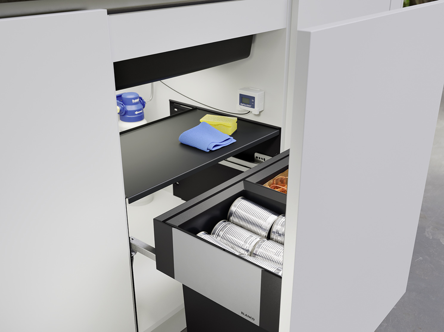 Система сортировки отходов SELECT II Compact 60/2 от Blanco воплощает философию бескомпромиссного качества, инновационного дизайна и функциональности, превращая самое активное место на кухне в продуманный, эргономичный и эстетичный центр для приготовления пищи.