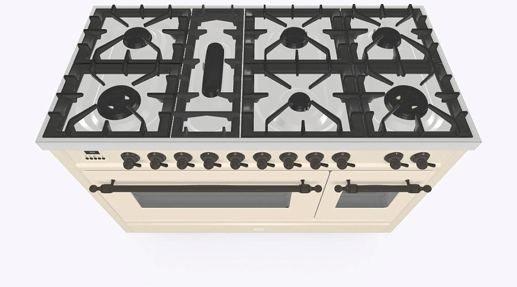 • Тип конфорок: 7 газовых, горелка для рыбной кастрюли, двухконторная конфорка DUAL