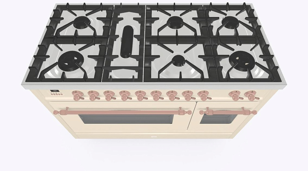 • Тип конфорок: 7 газовых, горелка для рыбной кастрюли, двухконторная конфорка DUAL