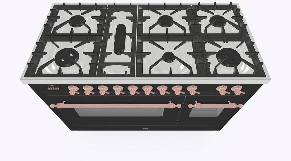 • Тип конфорок: 7 газовых, горелка для рыбной кастрюли, двухконторная конфорка DUAL