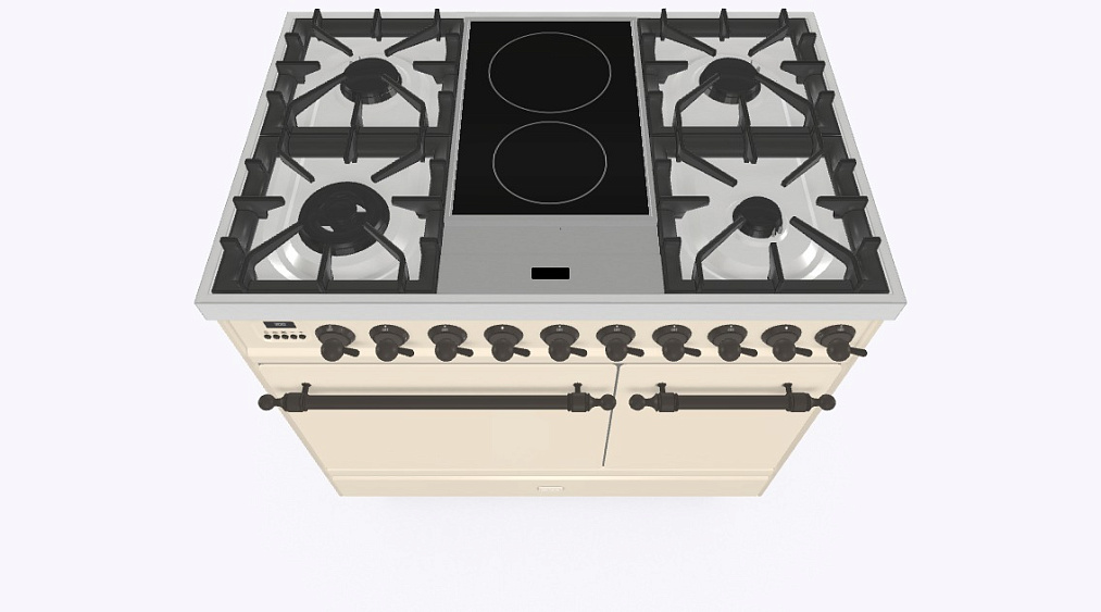 4 газовых, 2 индукционные варочные зоны, двухконторная конфорка DUAL