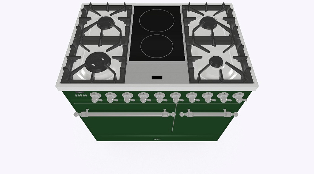 4 газовых, 2 индукционные варочные зоны, двухконторная конфорка DUAL