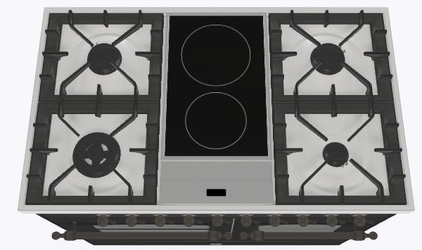 2 индукционные, 4 газовые, 1 Dual конфорка
