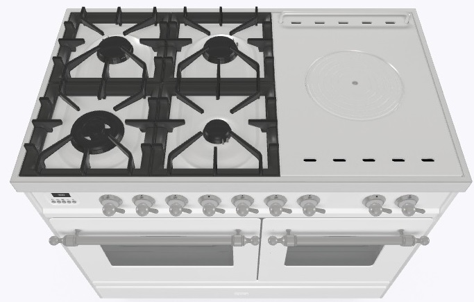 4 газовые конфорки, Dual конфорка, жарочная поверхность Coup de Feu